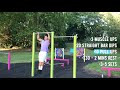 I would classify this as a giant set and work on endurance the most. I picked 3 muscle ups is due to the fact that I can keep it clean form for 5 sets and beyond. You can choose to do 5 muscle up or more as you get stronger.